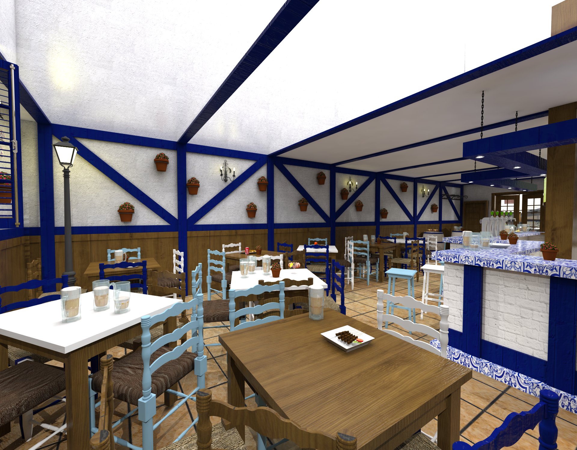 El rincón Andaluz es un restaurante con clara ascendencia andaluza, como cabría esperar por su nombre. En este sentido, desde el principio buscamos una taberna tradicional que rememorase un patio andaluz.