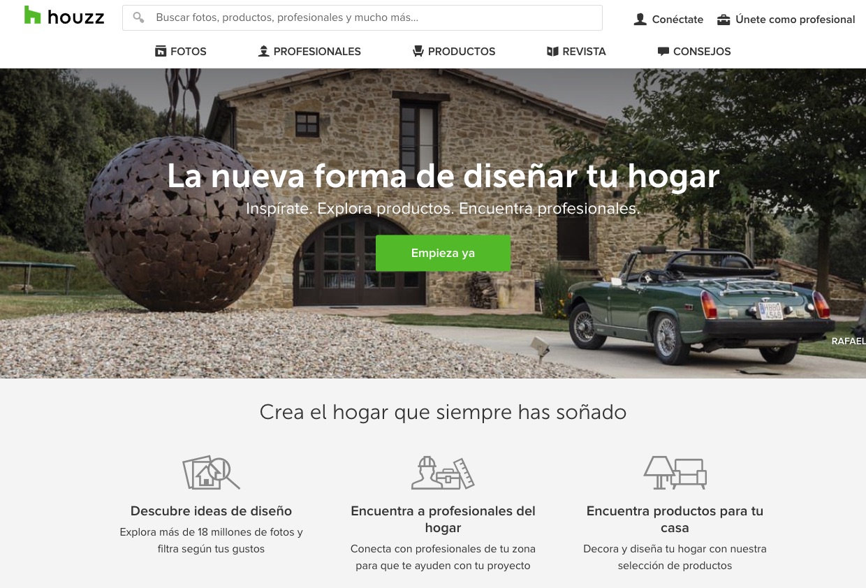 Houzz es una web estadounidense sobre arquitectura que aglutina toda comunidad detrás. A diferencia de otras plataformas como Instagram o Pinterest, donde también podemos tomar ideas sobre decoración, arquitectura y una infinidad de temas más, Houzz se centra única y exclusivamente en arquitectura, diseño de interiores y decoración, diseño de paisajes y mejoras para el hogar.