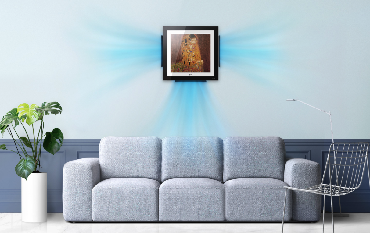 Como profesional del interiorismo, agradezco enormemente este trabajo de diseño, porque permite integrar elementos funcionales en espacios como un elemento ornamental más y no como algo a ocultar de la vista. ¿Qué os parece este original aire acondicionado de LG? Aire acondicionado, bomba de calor y un cuadro de Klimt para convertirse en el protagonista de estancias de lo más elegantes
